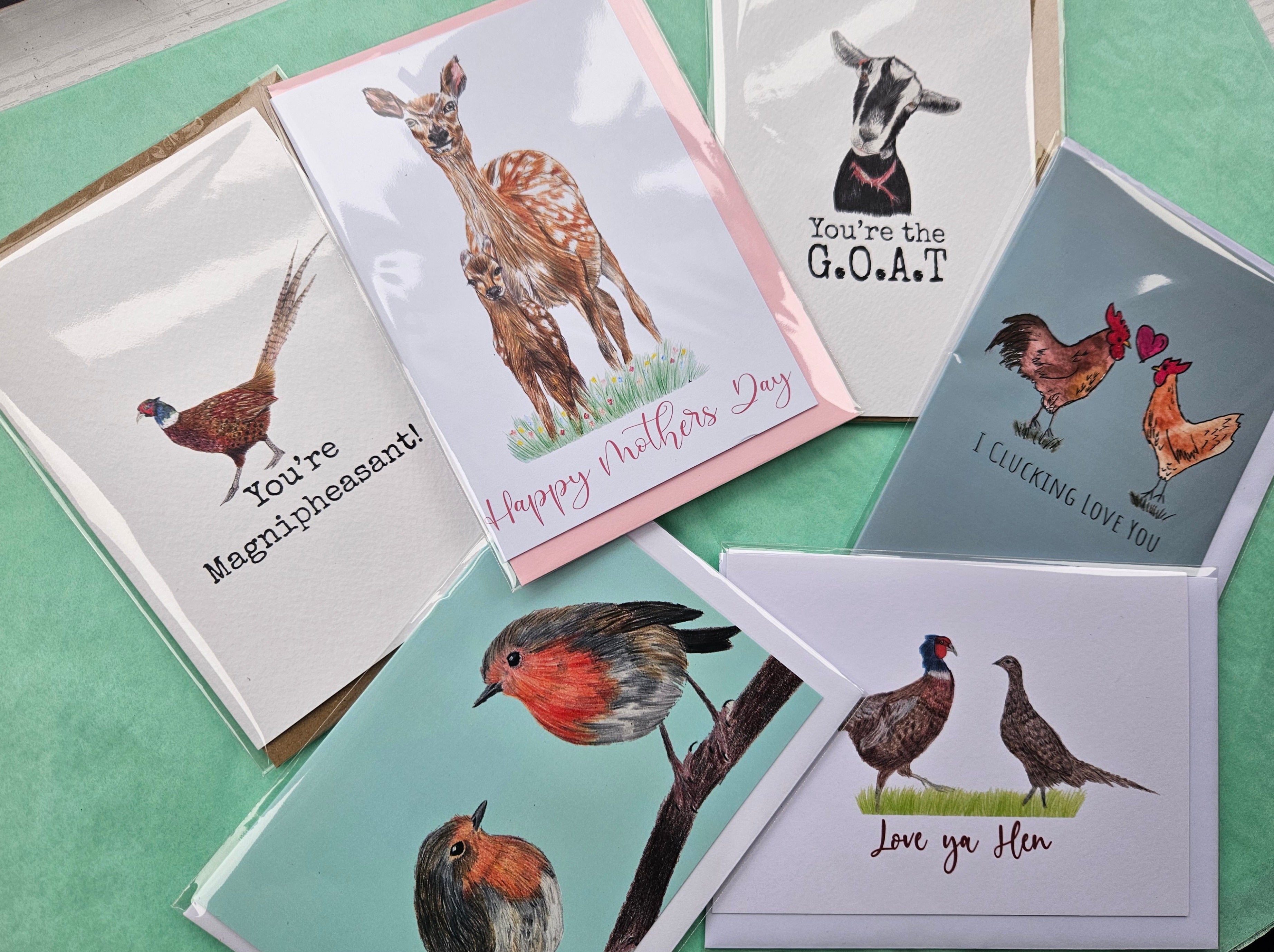 Ballarie Designs was created in 2018 by Jessica Grant. Combining a passion for farming and creativity. Jessica works as a full time shepherdess with just shy of 500 hill sheep at Ballarie Farm, a couple ponies, chickens, goats and dogs. Ballarie Designs runs alongside, all products (excluding cards) are printed at Ballarie HQ and most artwork subjects are either from Ballarie Farm or other local farms on the island.